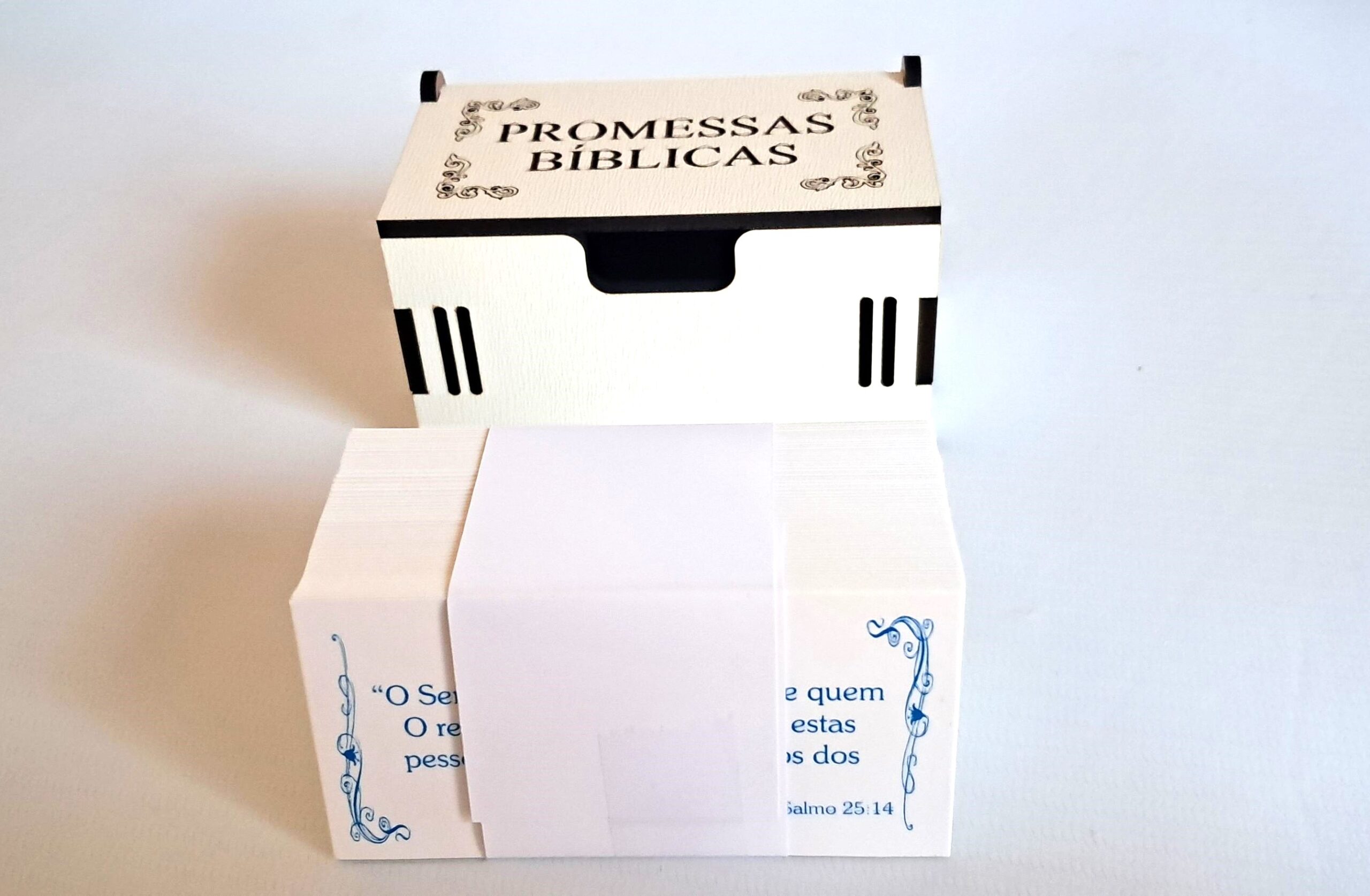 Além de funcional, a Caixa de Promessas Bíblicas transmite propósito. Cada versículo pode ser guardado no coração, compartilhado com amigos ou até mesmo usado em devocionais, estudos bíblicos ou momentos em grupo.